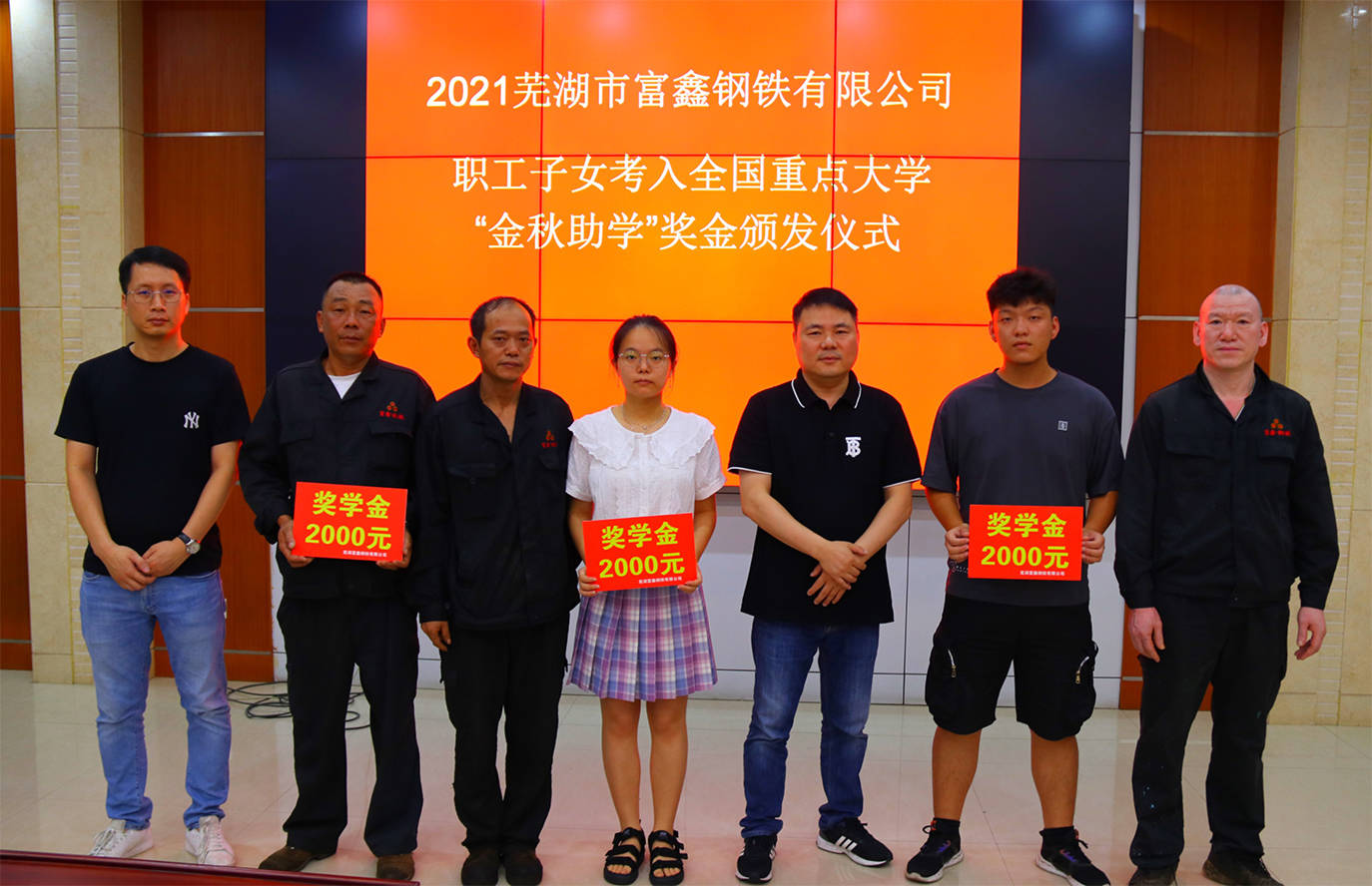 8月11日下午,在蕪湖市富鑫鋼鐵有限公司舉行的2021“金秋助學”獎金發放儀式上,向今年考取電子科技大學、東南大學、...